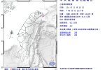 21:36東部海域發生地震,最大震度3級。(氣象署)